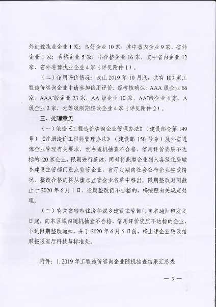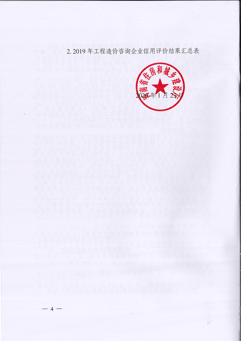 河(hé)南省住房(fáng)和(hé)城鄉建設廳2019年度工程造價AAA級企業